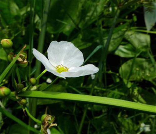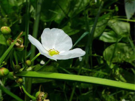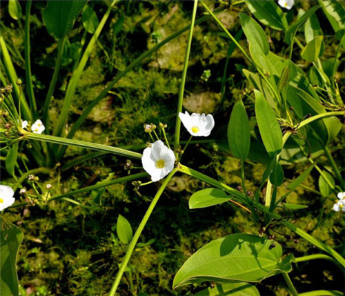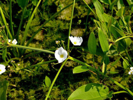 多年牛水生或沼生草本。根状茎直立,通常较小。叶基生,多数:沉水叶较小,卵形或椭圆形,浮水叶较大,卵圆形,先端钝圆,基部心形;叶柄长1 5~5 Ocm,中下部具横隔,顶端不呈叶枕状:花莛直立,高3 O~60cm。花序分枝轮牛,每轮3个分枝,下部1~3轮可再次分枝:花两性,花梗长1.2~2 cm;外轮花被片3枚,绿色,卵圆形,内轮花被片白色,匙形或近倒卵形。雄蕊6枚。花果期7~9月。